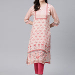 Description - Straight Style Rayon Fabric Peach Color Kurti With Thread & Sequence Work