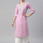 Straight Style Cotton Fabric Lavender Color Kurti