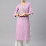 Straight Style Cotton Fabric Purple Color Kurti