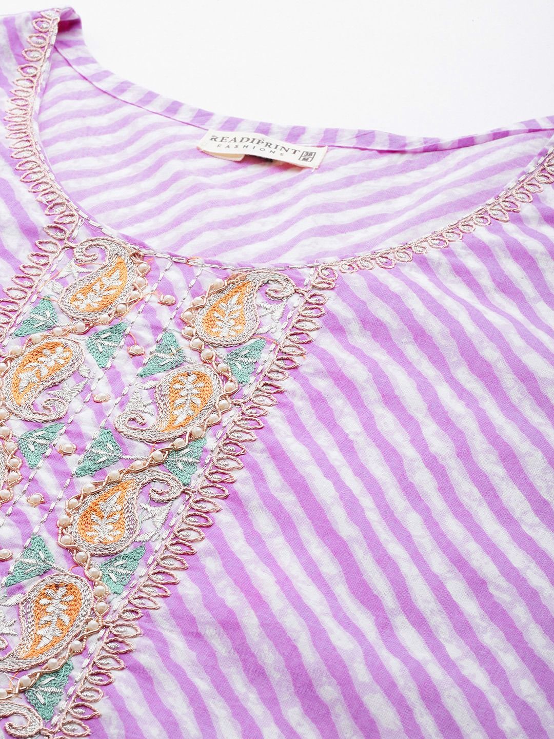 Description - Straight Style Cotton Fabric Purple Color Kurti With Thread, Bead & Zari Work