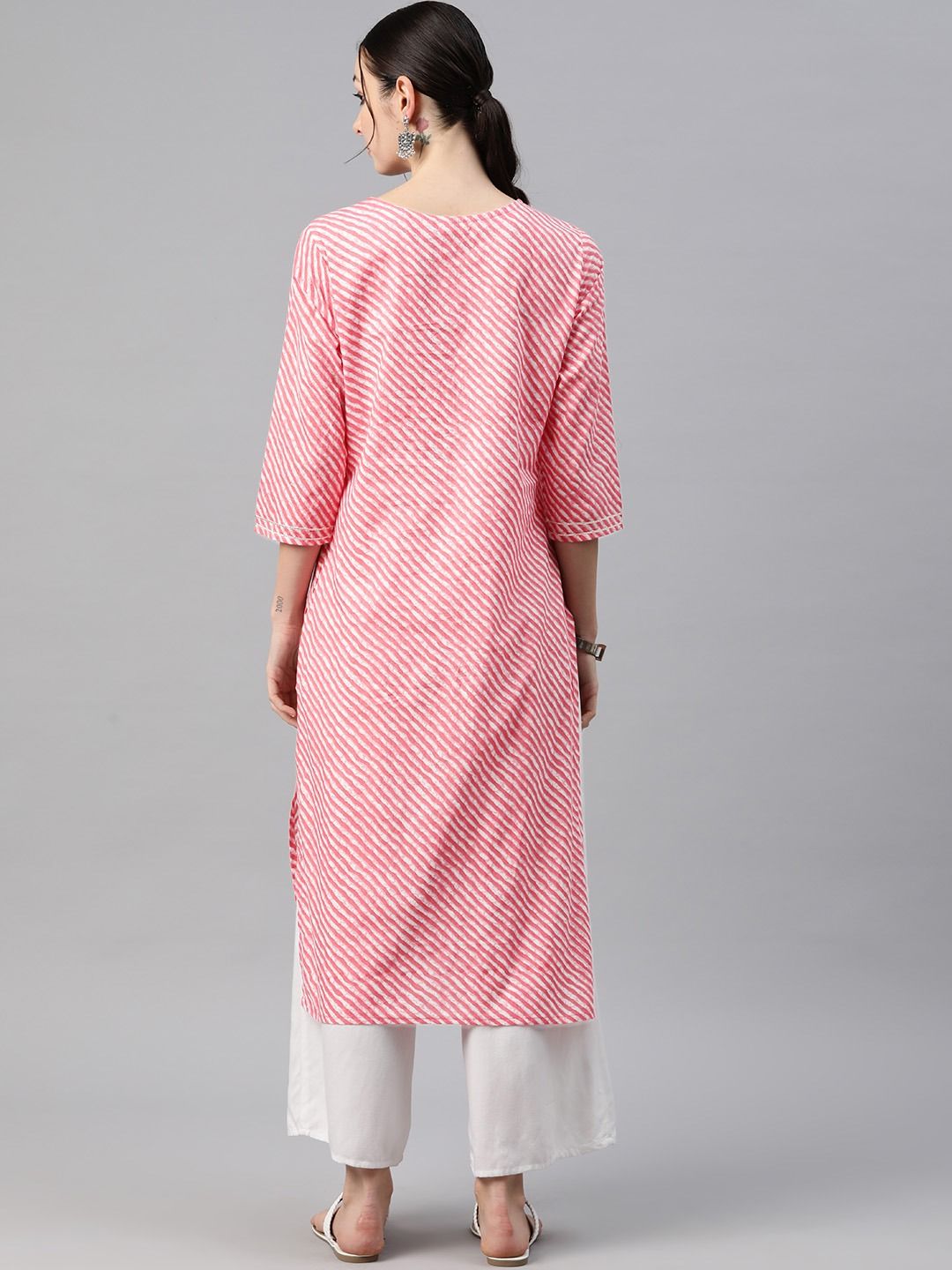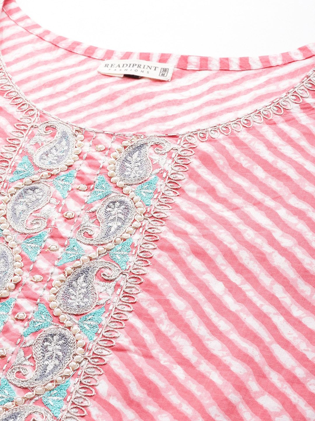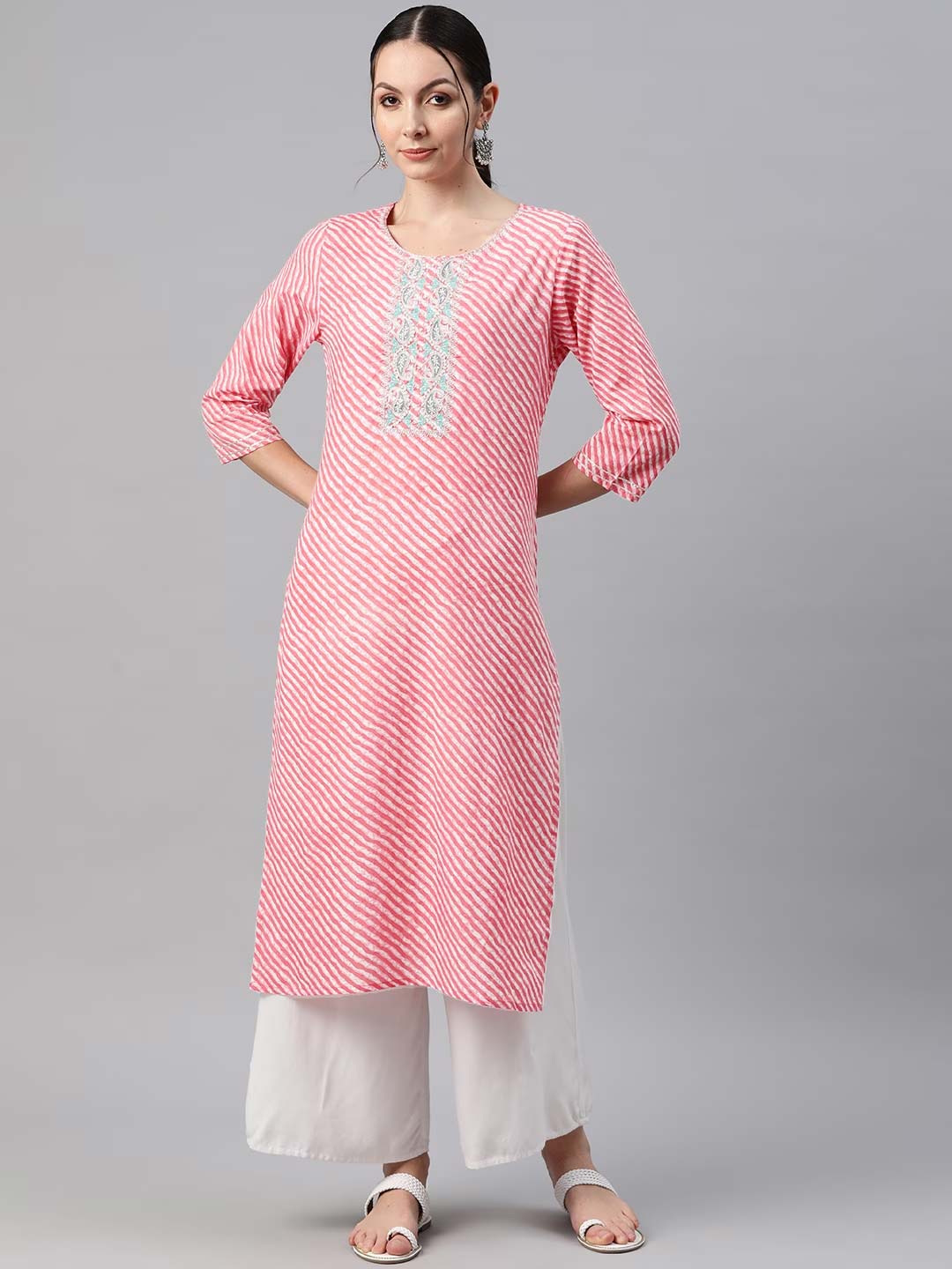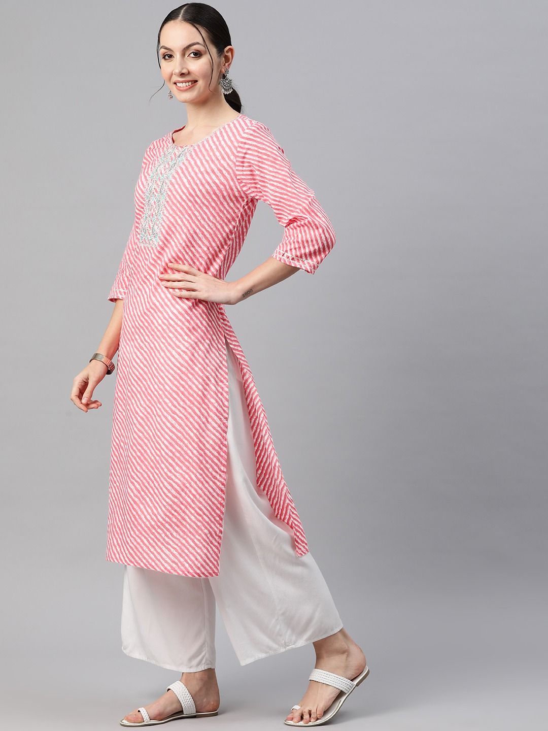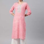 Description - Straight Style Cotton Fabric Red Color Kurti With Thread, Bead & Zari Work