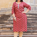 Straight Style Cotton Fabric Burgundy Color Kurta