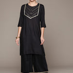 Straight Style Rayon Fabric Black Color Kurta