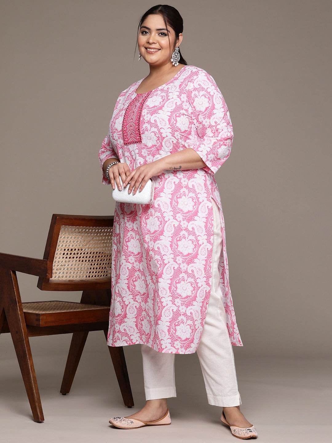 Plus Size Straight style Cotton fabric Pink color kurta