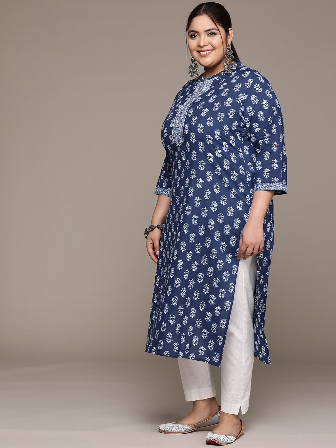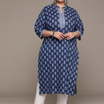 Plus Size Straight style Cotton fabric Navy Blue color kurta