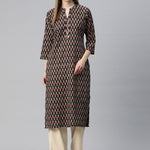 Straight Style Cotton Fabric Black Color Kurti With Mirror & Floral Printed Work