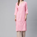 Straight Style Cotton Fabric Pink Color Kurti With Lace Work