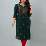 Rayon Embroidery Straight 3/4 Sleeves Round Neck Calf Kurta