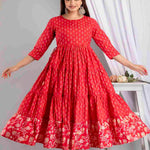 Cotton Calf Length Printed Flared 3/4 Sleeve Round Neck Kurta