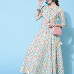 Cotton Ankle Length Printed Flared 3/4 Sleeves Round Neck Kurta (Preorder)