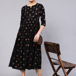 Rayon Calf Length Printed Flared 3/4 Sleeve Round Neck Kurta (Preorder)