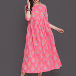 Printed Flared Calf Length 3/4 Sleeves Round Neck Cotton Kurta Dress (Preorder)