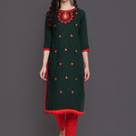 Embroidered Straight Calf Length 3/4 Sleeves Keywhole Neck Rayon Kurti (Preorder)