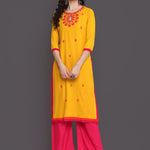 Embroidered Straight Calf Length 3/4 Sleeves Keywhole Neck Rayon Kurti (Preorder)
