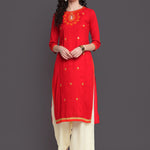 Embroidered Straight Calf Length 3/4 Sleeves Keywhole Neck Rayon Kurti (Preorder)