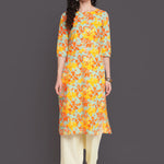 Printed Straight Calf Length 3/4 Sleeves Round Neck Cotton Slub Kurta (Preorder)