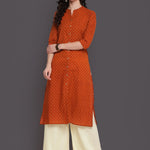 Printed Straight Calf Length 3/4 Sleeves Collor Neck Cotton Kurta (Preorder)