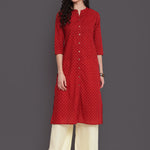 Printed Straight Calf Length 3/4 Sleeves Collor Neck Cotton Kurta (Preorder)