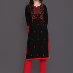 Embroidered Straight Calf Length 3/4 Sleeves Round Neck Rayon Kurta (Preorder)