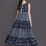 Printed Flared Top Ankle Length Sleeveless Round Neck Cotton Kurta (Preorder)