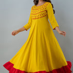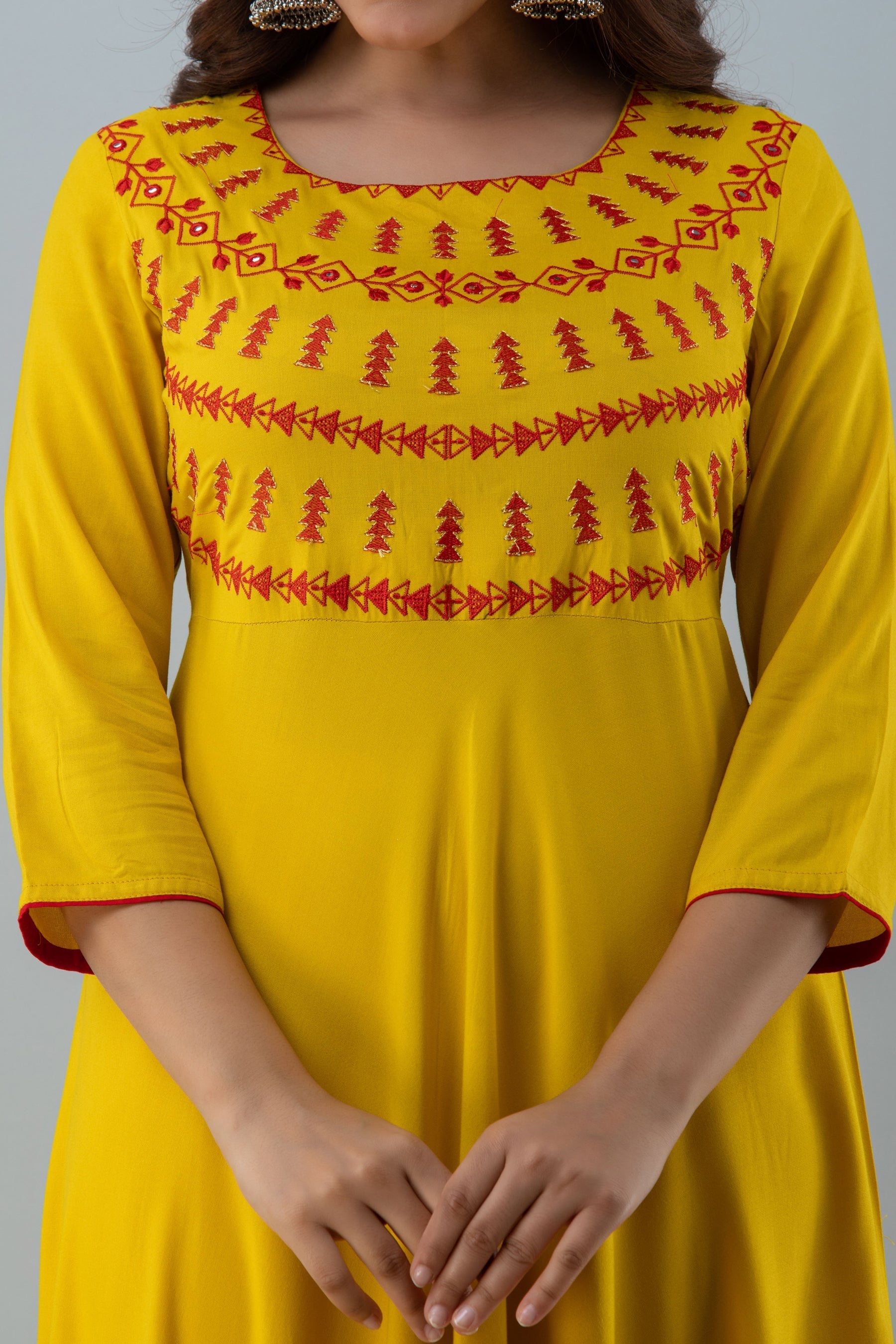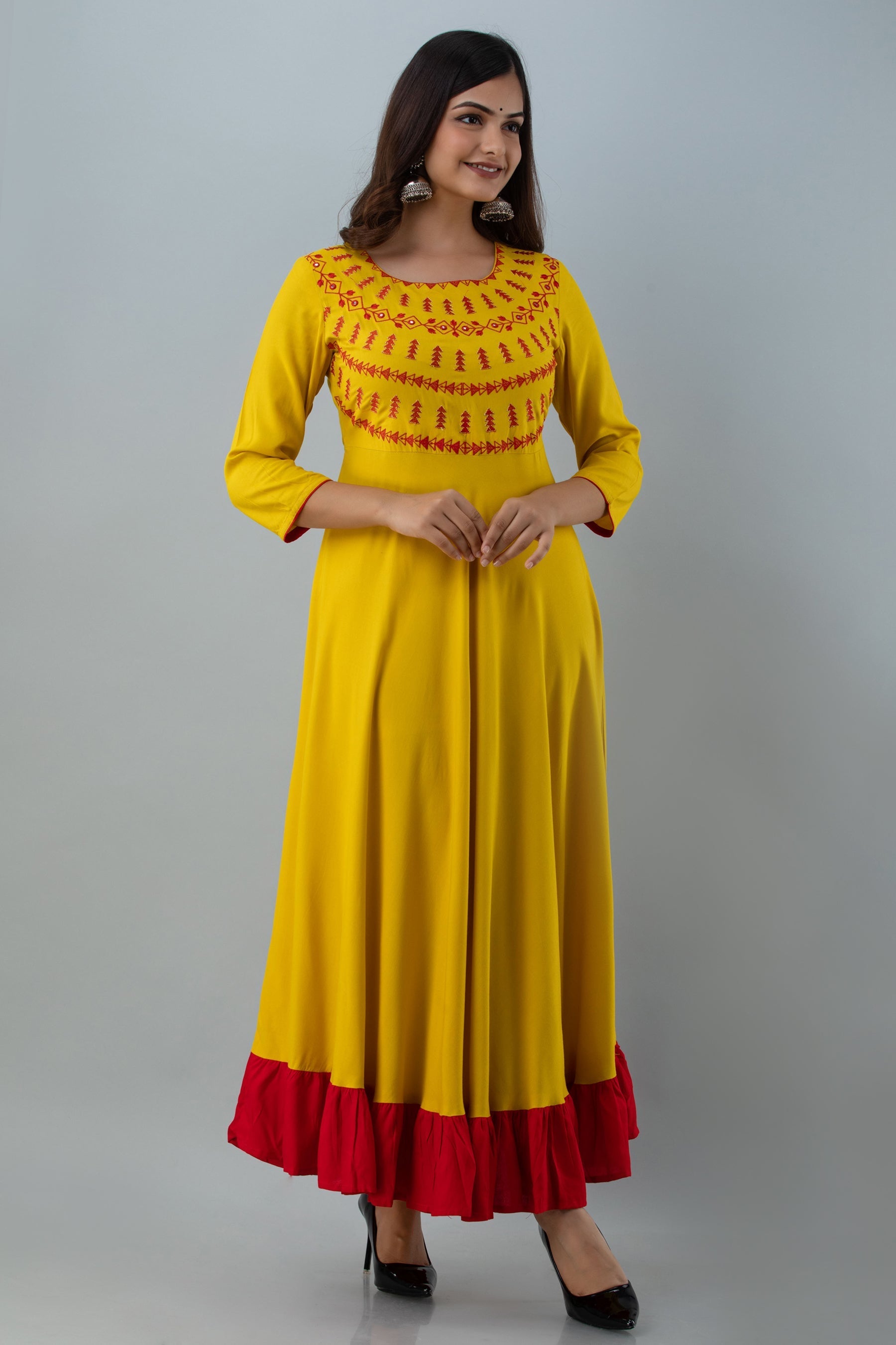 Embroidered Flared Ankle 3/4 Sleeves Round Neck Rayon Kurta (Preorder)