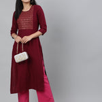 Rayon Mirror work 3/4 Sleeve Straight Round Neck Calf Length Kurta (Preorder)