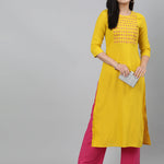 Rayon Mirror work 3/4 Sleeve Straight Round Neck Calf Length Kurta (Preorder)