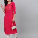 Rayon Mirror work 3/4 Sleeve Straight Round Neck Calf Length Kurta (Preorder)