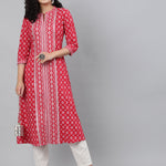 Rayon Printed 3/4 Sleeve A-Line Collar Neck Calf Length Kurta (Preorder)
