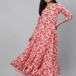 Rayon Printed 3/4 Sleeve Flared Round Neck Ankle Length Length Kurta (Preorder)