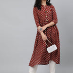 Cotton Printed 3/4 Sleeve Flared Collar Neck Calf Length Kurta (Preorder)