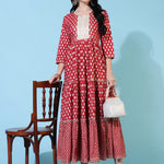 Rayon Ankle Length Flared 3/4 Sleeves Printed Round Neck Kurta (Preorder)