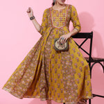 Cotton Ankle Length Printed Flared 3/4 Sleeves Round Neck Kurta (Preorder)