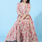 Cotton Ankle Length Printed Flared 3/4 Sleeves Sweetheart Neck Kurta (Preorder)