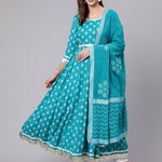 Rayon Ankle Length Printed Flared 3/4 Sleeve Round Neck Kurta Dupatta Set (Preorder)