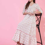 Cotton Ankle Length Printed Flared 3/4 sleeves V neck Kurta (Preorder)