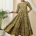 Cotton Calf Length Printed 3/4 Sleeve Round Neck Kurta (Preorder)