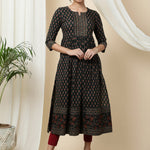 Cotton Calf Length Printed 3/4 Sleeve Round Neck Kurta (Preorder)