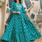 Rayon Ankle Length Printed Flared 3/4 Sleeves Round Neck Kurta (Preorder)