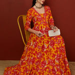 Cotton Ankle Length Length Printed Flared 3/4 Sleeves V-Neck Kurta (Preorder)