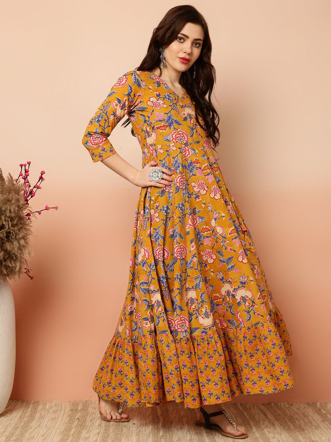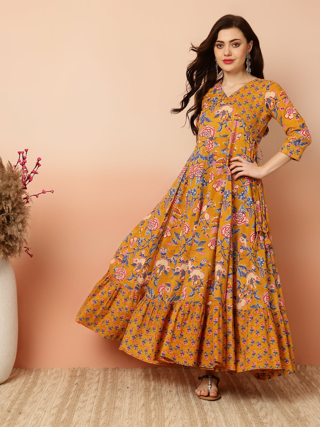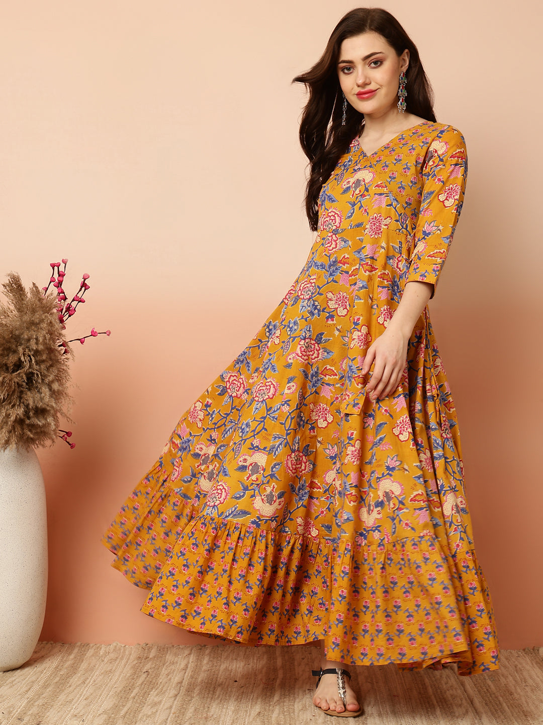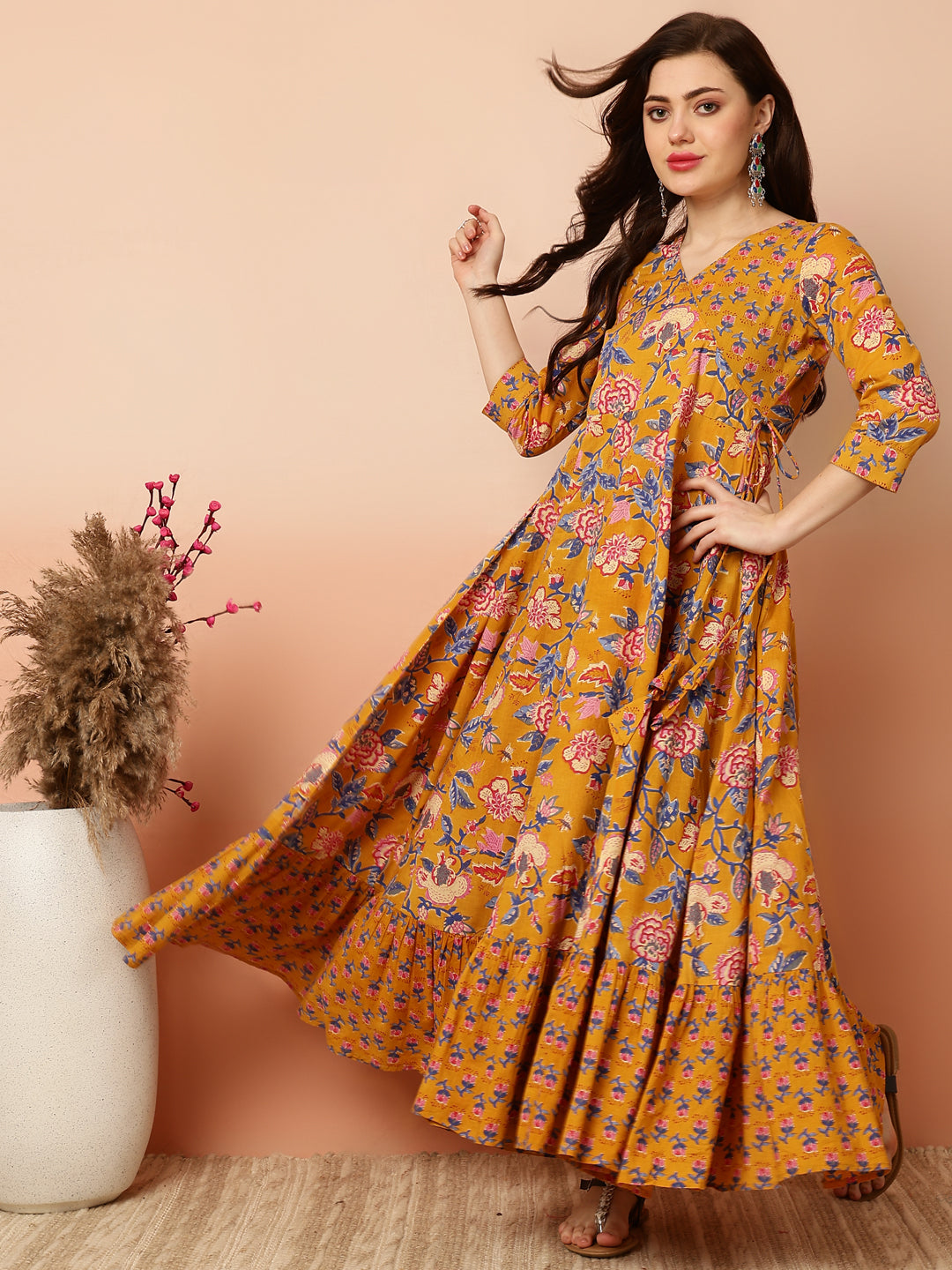 Ankle Length Flared 3/4 Sleeves V Kurta (Preorder)