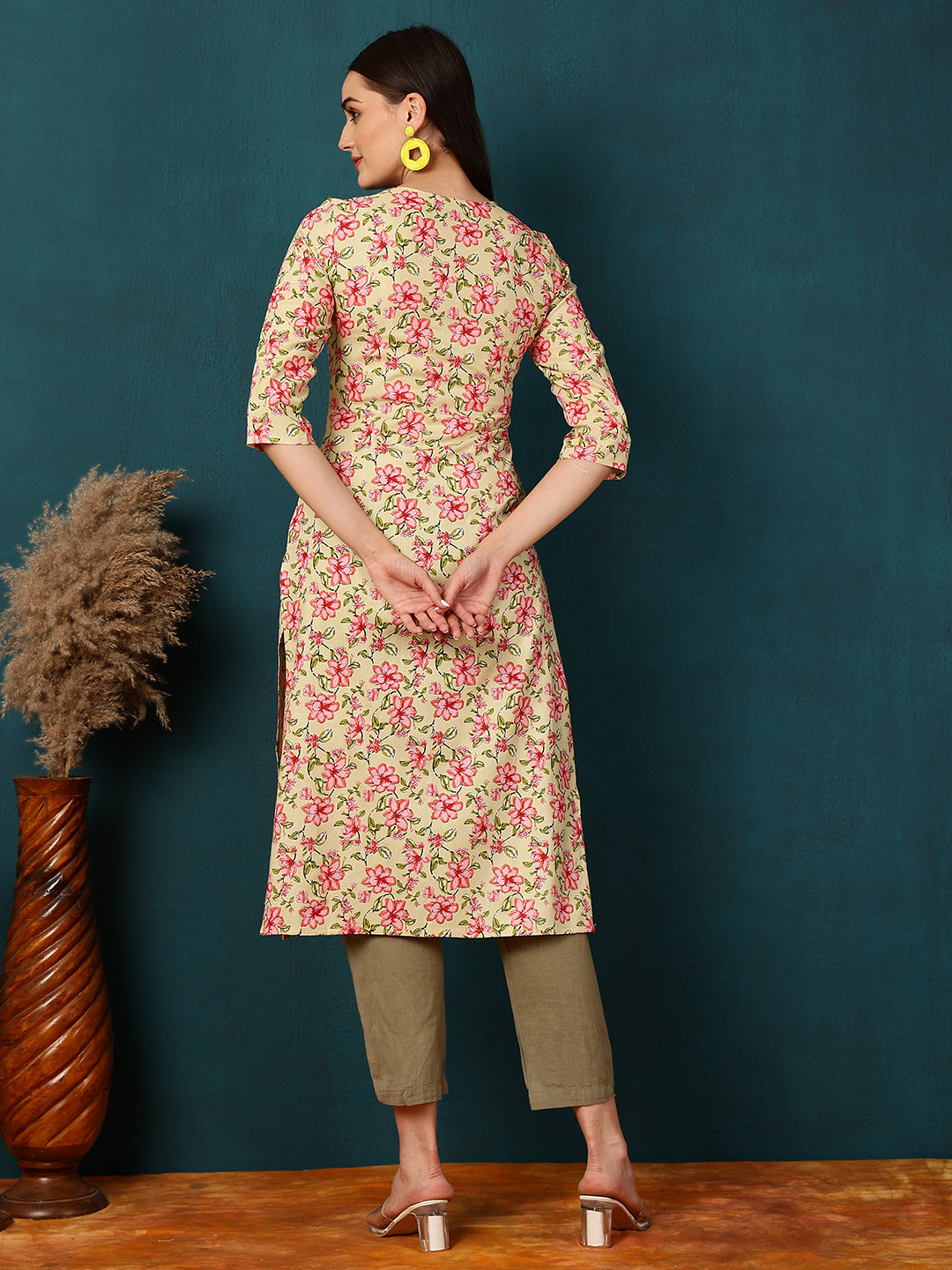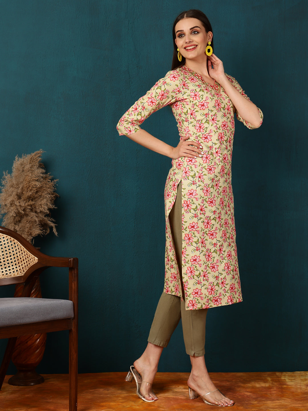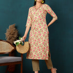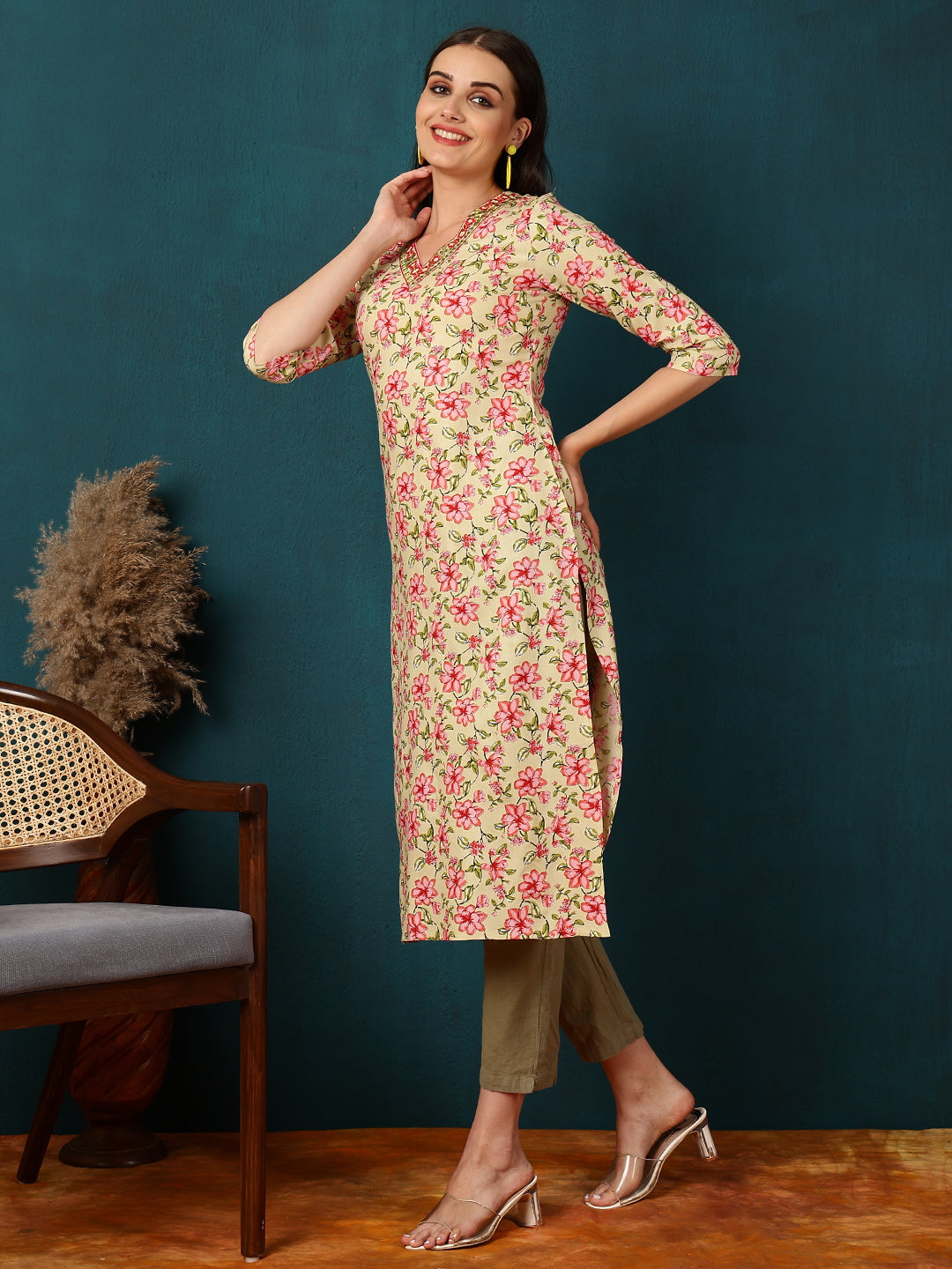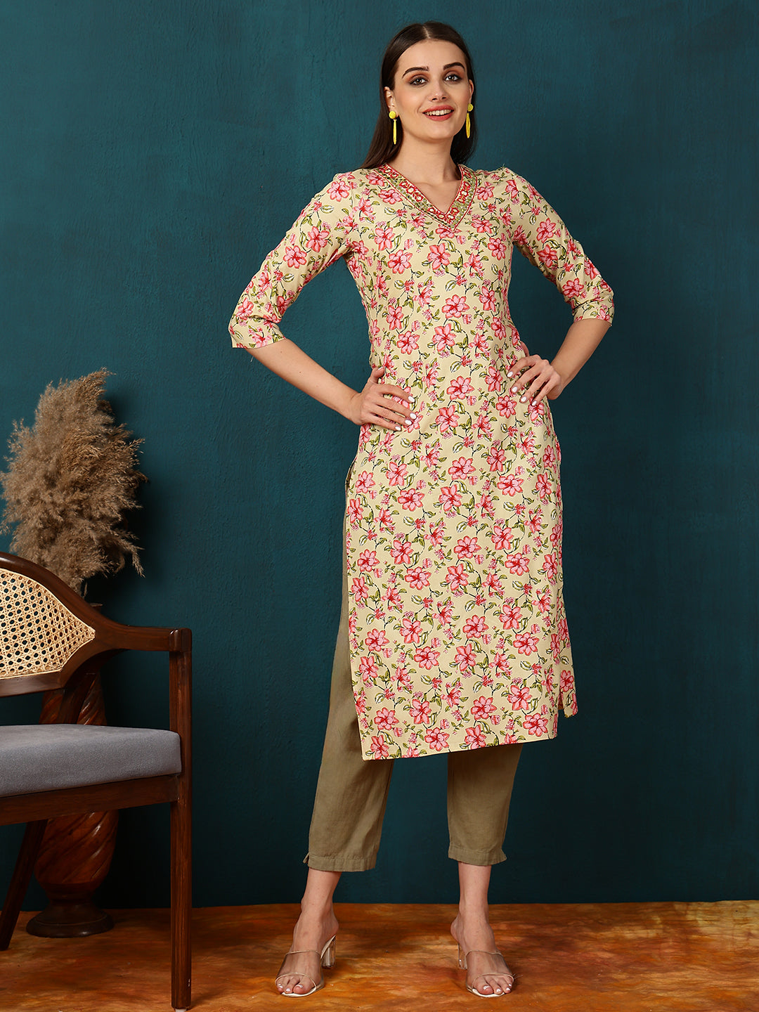Rayon Calf Length Printed Straight 3/4 Sleeves V-Neck Kurta (Preorder)