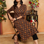 Rayon Calf Length Printed Straight 3/4 Sleeves Shirt Collar Kurta (Preorder)
