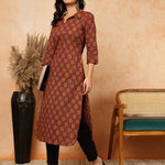 Rayon Calf Length Printed Straight 3/4 Sleeves Shirt Collar Kurta (Preorder)
