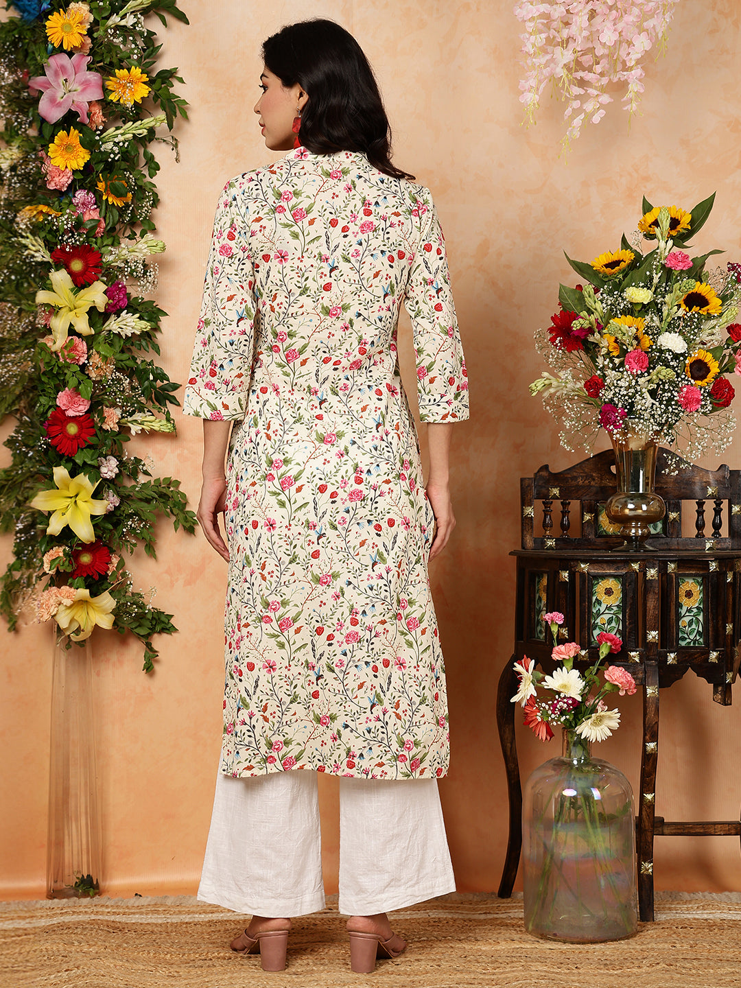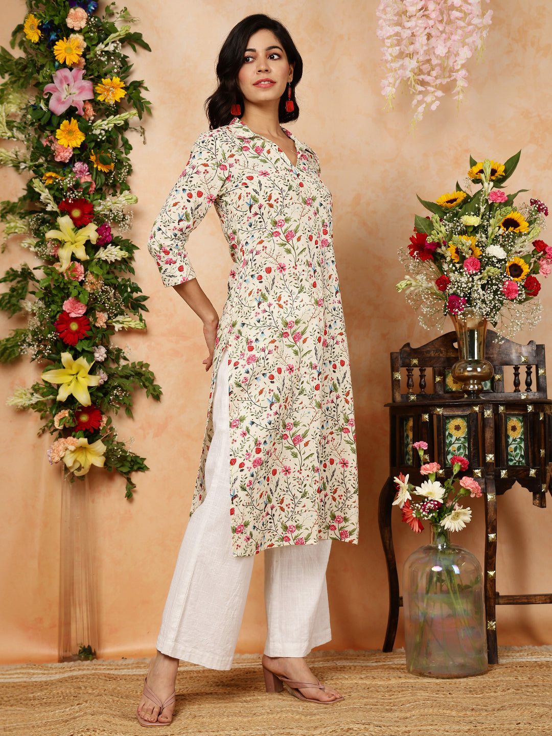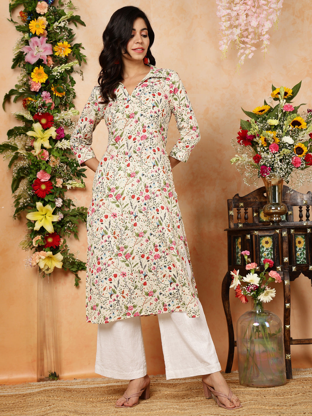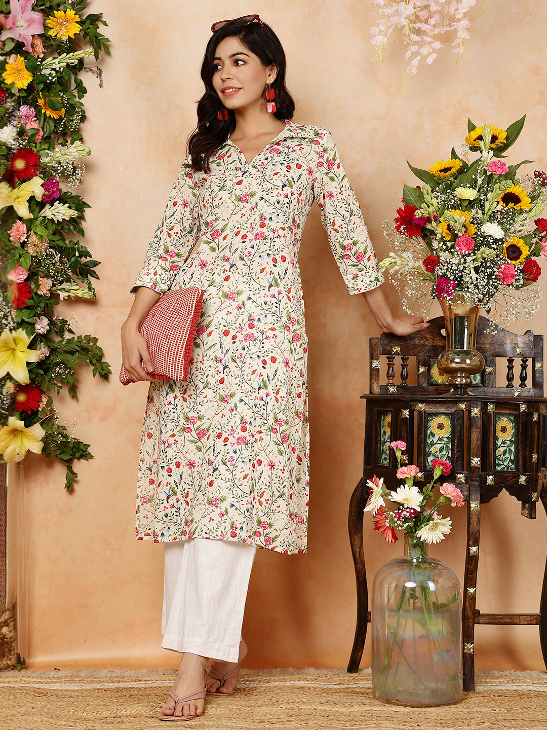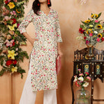 Rayon Calf Length Printed Straight 3/4 Sleeves Shirt Collar Kurta (Preorder)