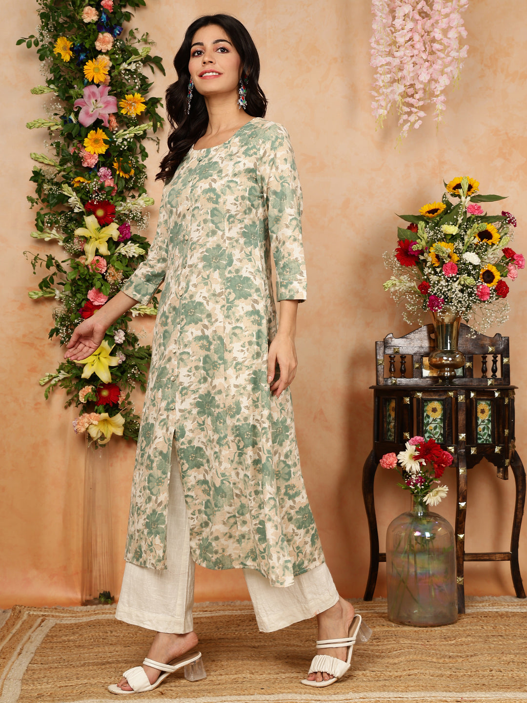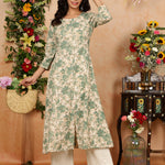 Cotton Flex Calf Length Printed A-Line 3/4 Sleeves Round Kurta (Preorder)