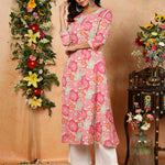 Cotton Flex Calf Length Printed A-Line 3/4 Sleeves Round Kurta (Preorder)