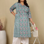 Cotton Calf Length Printed Straight 3/4 Sleeves V-Neck Kurta (Preorder)