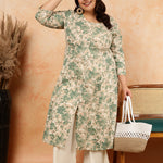 Cotton Flex Flex Calf Length Printed Straight 3/4 Sleeves Round Kurta (Preorder)