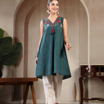 Rayon Calf Length Solid Sleeveless V Neck A Line Kurta (Pre-Order)